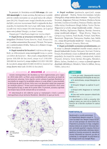 300.000 de locuitori), orașe mijlocii (50.000-100.000 Eforie, Sulina, Predeal etc.); orașe cu funcții agro-in-