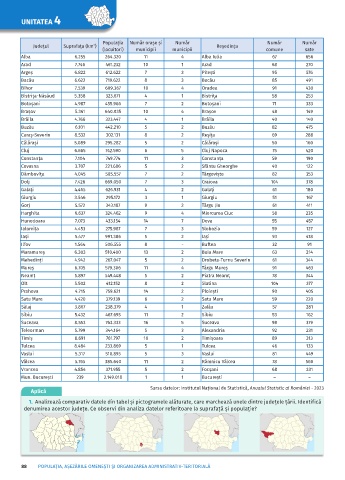 denumirea acestor județe. Ce observi din analiza datelor referitoare la suprafață și populație?
