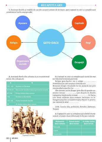2. Asociază datele din coloana A cu evenimentul 3. Copiază în caiet și completează textul de mai
