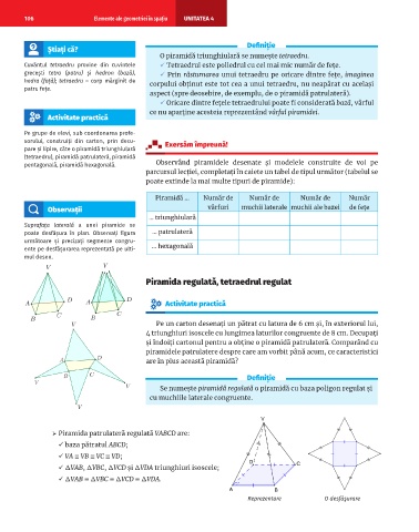 pentagonală, piramidă hexagonală. Observând piramidele desenate şi modelele construite de voi pe
