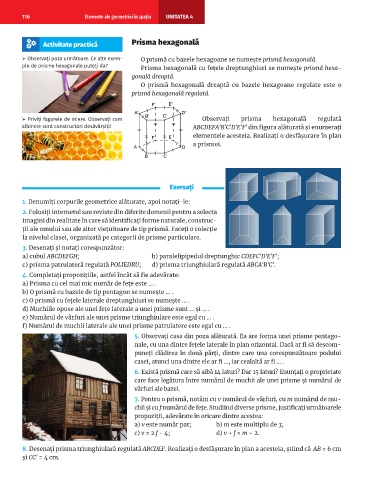 Observaţi poza următoare. Ce alte exem- O prismă cu bazele hexagoane se numeşte prismă hexagonală.