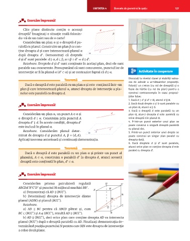 intersecție ar fi în planul α ( d’ ⊂ α ) şi ar contrazice faptul că d ∥ α . Activitate în cooperare