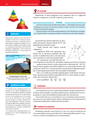 Reflectăm! pe o față laterală se numeşte apotema trunchiului de piramidă regulată.