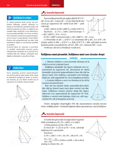 144 Elemente ale geometriei în spațiu UNITATEA 4
