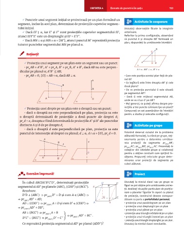segment, inclus în acel plan, determinat de proiecțiile capetelor segmen- Activitate în cooperare