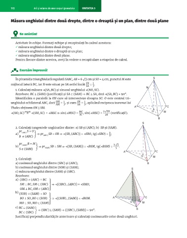 2. Calculaţi tangentele unghiurilor dintre: a) SB şi (ABC) ; b) SB şi (SAM) .