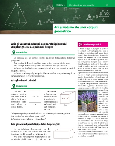 UNIT A TEA 5 Arii și v olume a l e unor c orpuri g eometric e 1 175
