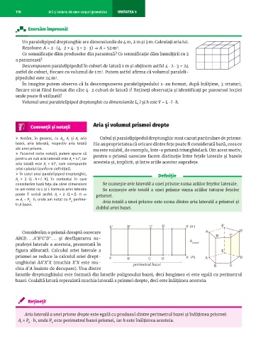 176 Arii și volume ale unor corpuri geometrice UNITATEA 5