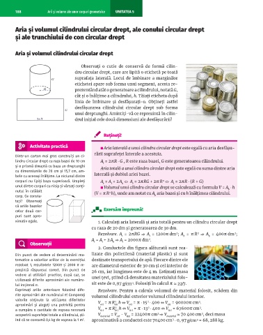 188 Arii și volume ale unor corpuri geometrice UNITATEA 5
