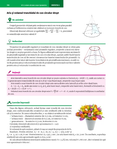 190 Arii și volume ale unor corpuri geometrice UNITATEA 5
