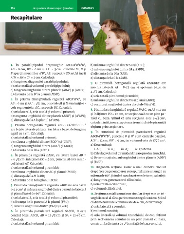 196 Arii și volume ale unor corpuri geometrice UNITATEA 5