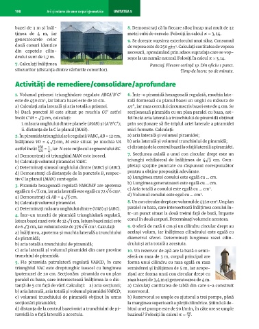 198 Arii și volume ale unor corpuri geometrice UNITATEA 5