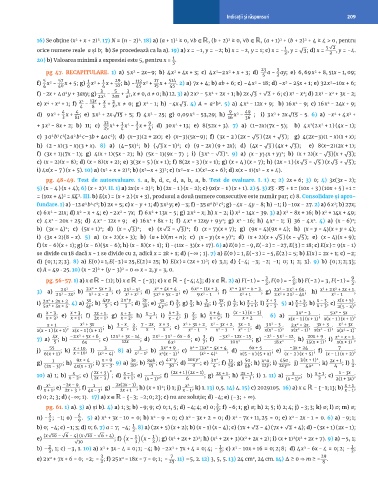 pg. 56-57. 1) a) x ∈ ℝ − {1} ; b) x ∈ ℝ − {− 3} ; c) x ∈ ℝ − {− 4; 4} ; d) x ∈ ℝ . 2) a) F(− 1 ) = − , F(0 ) = − ; b) F(− 2 ) = 3 , F(− 1 ) = .