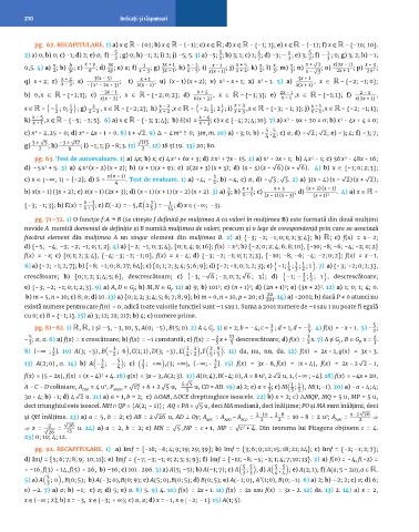 pg. 62. RECAPITULARE. 1) a) x ∈ ℝ − {0} ; b) x ∈ ℝ − {− 1} ; c) x ∈ ℝ ; d) x ∈ ℝ − {− 1; 1} ; e) x ∈ ℝ − {− 1} ; f) x ∈ ℝ − {− 10; 10} .