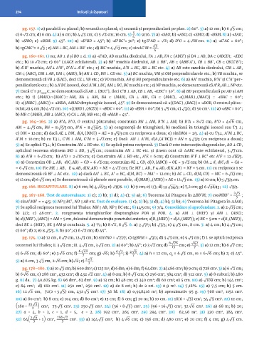 pg. 166. RECAPITULARE. 8) a) 6 cm; b) 4 √ 6 ⁄3 ; c) √ 11 ⁄6 . 11) b) 9 cm; c) 1/3; d) 12 √ 34 ⁄5 ; e) 7,2 cm; g) 6 √ 26 ⁄13 ; 12) √ 2 ⁄2 .