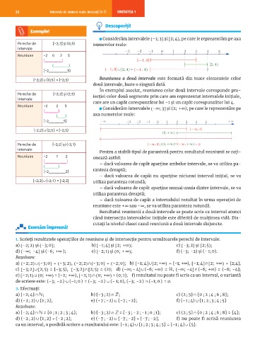 e) [− 2; 1) ∪ (0; +∞) = [−2; +∞) , [− 2; 1) ∩ (0; +∞) = (0; 1) ; f) rezultatul nu poate fi scris ca un interval, o variantă