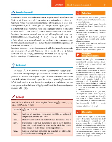 Etapele de rezolvare, în ℝ , a inecuaţiilor de forma _ diției de existență, este ℝ − { } , rezultă
