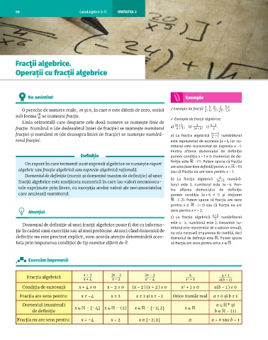 Domeniul de definiție al unei fracții algebrice poate fi dat ca informa- mitorul este reprezentat de o valoare nenulă,