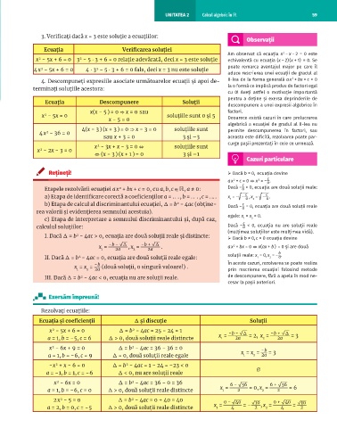 b) Etapa de calcul al discriminantului ecuației, Δ = b − 4ac (obține- Dacă − = 0 , ecuația are două soluții reale