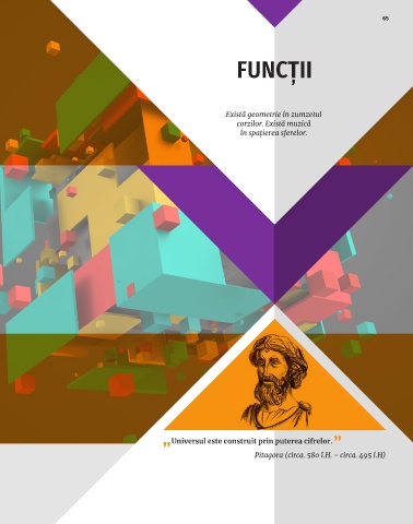 65 FUNCȚII Există geometrie în zumzetul corzilor. Există muzică în spaţierea sferelor. Universul este construit prin puterea cifrelor. Pitagora (circa. 580 î.H. - circa. 495 î.H)