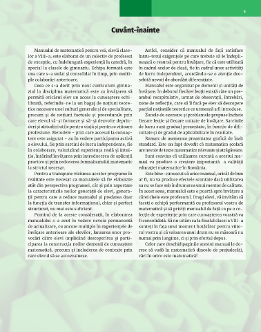 Manualul de matematică pentru voi, elevii clase- Astfel, consider că manualul de față satis face