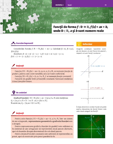 Considerăm funcţia f : ℝ → ℝ, f(x) = 2x + 3 . Calculaţi f(−2); f(−0,5); Imaginile următoare reprezintă exem-