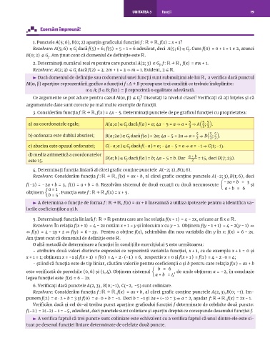 Rezolvare: A(5; 6) ∈ G dacă f(5) = 6 ; f(5) = 5 + 1 = 6 adevărat, deci A(5; 6) ∈ G . Cum f(0) = 0 + 1 = 1 ≠ 2 , atunci