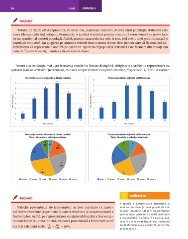 pe un eşantion al acestei populaţii. Astfel, pentru caracteristica note la test, toţi elevii unei şcoli formează o