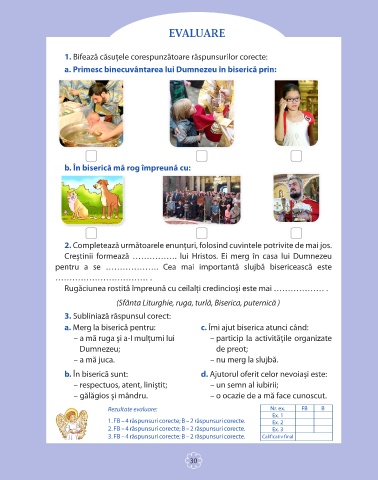 b. În biserică sunt: d. Ajutorul oferit celor nevoiași este: