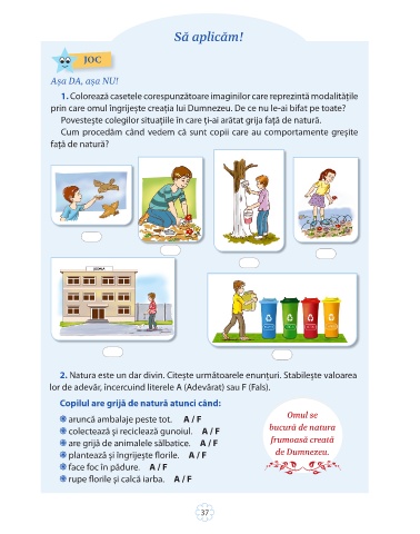 2. Natura este un dar divin. Citește următoarele enunțuri. Stabilește valoarea