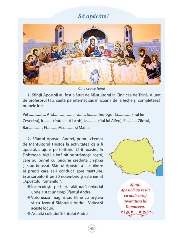 1. Sfinții Apostoli au fost alături de Mântuitorul la Cina cea de Taină. Ajutat