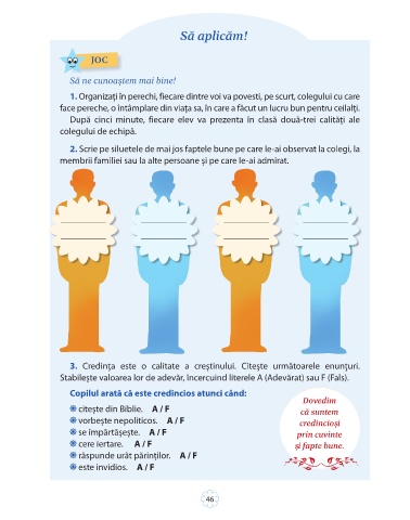 3. Credința este o calitate a creștinului. Citește următoarele enunțuri.