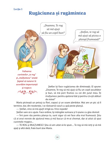 și respect. Ștefan își face rugăciunea de dimineață. El spune: