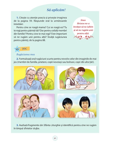 2. Formulează oral rugăciuni scurte pentru nevoile celor din imaginile de mai