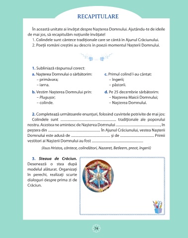 a. Nașterea Domnului o sărbătorim: c. Primul colind l-au cântat: