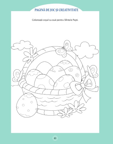 PAGINĂ DE JOC ȘI CREATIVITATE Colorează coșul cu ouă pentru Sfintele Paști. 83