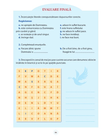 b. este comunicarea cu Dumnezeu f. este hrana sufletului.