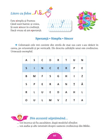careu, pe orizontală și pe verticală. Ele descriu calitățile unui om credincios.
