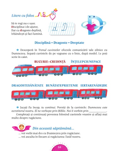 Dumnezeu. Separă cuvintele de pe vagoane cu o linie, după model. Le poți