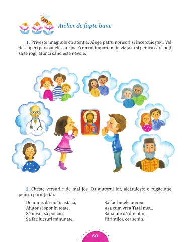 2. Citește versurile de mai jos. Cu ajutorul lor, alcătuiește o rugăciune