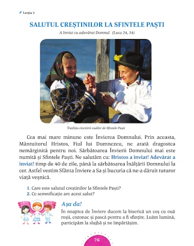 numită și Sfintele Paști. Ne salutăm cu: Hristos a înviat! Adevărat a