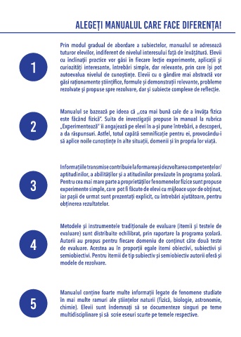 Manualul se bazează pe ideea că ,,cea mai bună cale de a învăța fizica