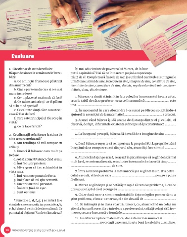 2. Ce afirmații referitoare la stima de 4. La începutul poveștii, Mircea dă dovadă de o imagine de sine …...........