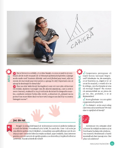 Nu te întreci cu ceilalți, ci cu tine însuți, cu ceea ce poți tu și con- √ Cooperarea presupune că