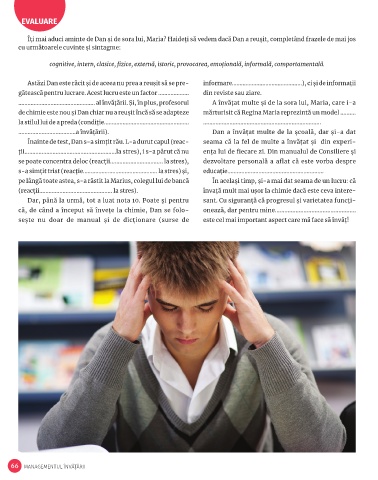 Înainte de test, Dan s-a simțit rău. L-a durut capul (reac- seama că la fel de multe a învățat și din experi-