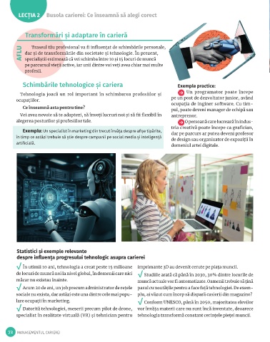 Exemplu: Un specialist în marketing din trecut învăța despre afișe tipărite, dar pe parcurs ar putea deveni profesor