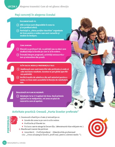 Gândește-te la 3–5 opțiuni de liceu. Dacă primele