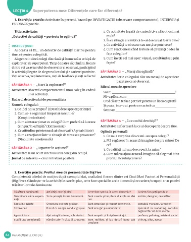 1. Exercițiu practic: Activitate în perechi, bazată pe INVESTIGAȚIE (observare comportamente), INTERVIU și