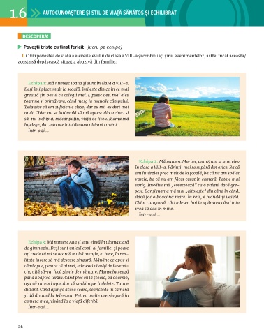I. Citiți povestea de viață a elevei/elevului de clasa a VIII-a și continuați șirul evenimentelor, astfel încât aceasta/