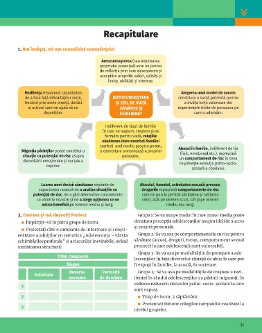 schimbărilor profunde” și a riscurilor inevitabile, având sănătate (alcool, droguri, tutun, comportament sexual